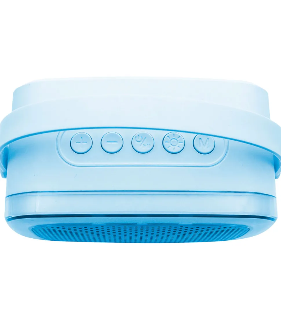 Fed Lalarma højtaler med to mikrofoner i blå.