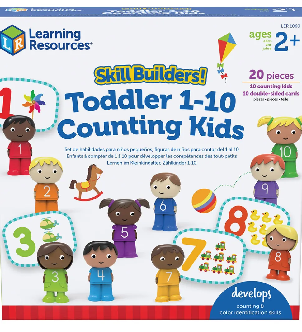 Farverigt Learning Resources aktivitetslegetøj med talfigurer fra 1 til 10, der hjælper børn med at udvikle tælle- og farvegenkendelsesevner. Sættet indeholder 20 dele, der engagerer og underholder børn i alle aldre.