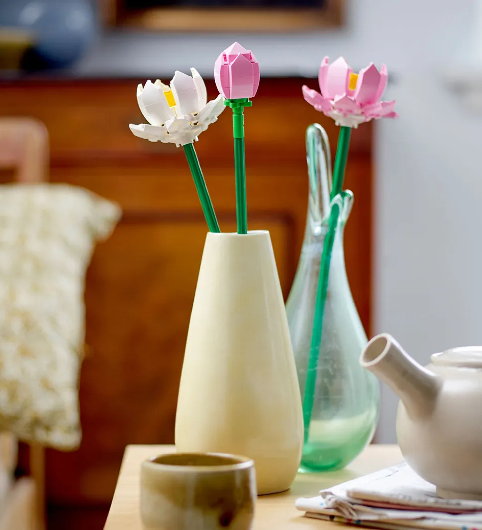 Skønne LEGO® blomster med i alt 220 klodser, som kan samles til rosa og hvide lotusblomster.