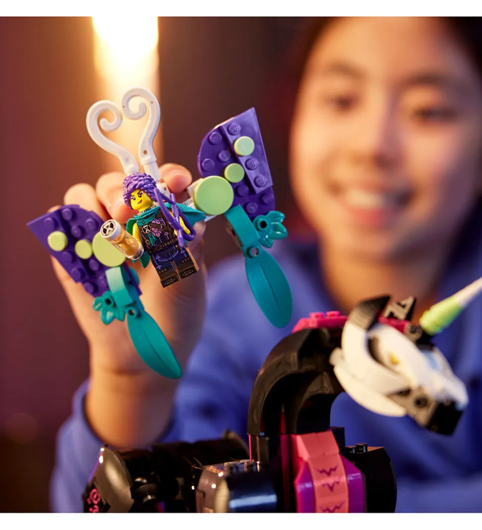 LEGO® DREAMZzz sættet inviterer ind i en fantasiverden, hvor Zoey redder Nova, som er taget til fange af mareridtsvæsnet Susan på den flyvende pegasus-hest. Med de samme klodser kan man enten bygge en fugl, eller give Zoey vinger, så hun kan jagte den flyvende fantasi-hest.