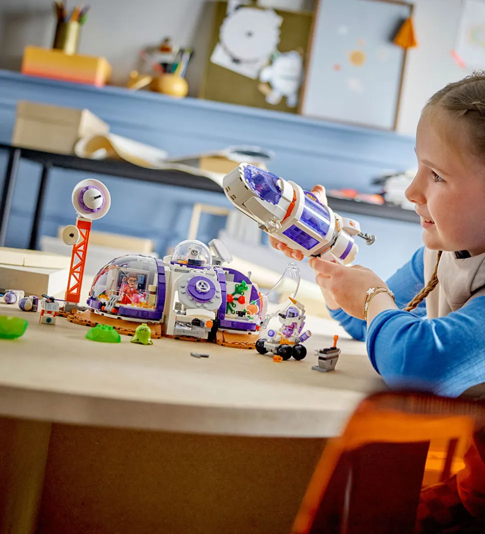 Fint LEGO® Friends sæt med i alt 981 klodser, som kan samles til en Mars-rumbase og raket.