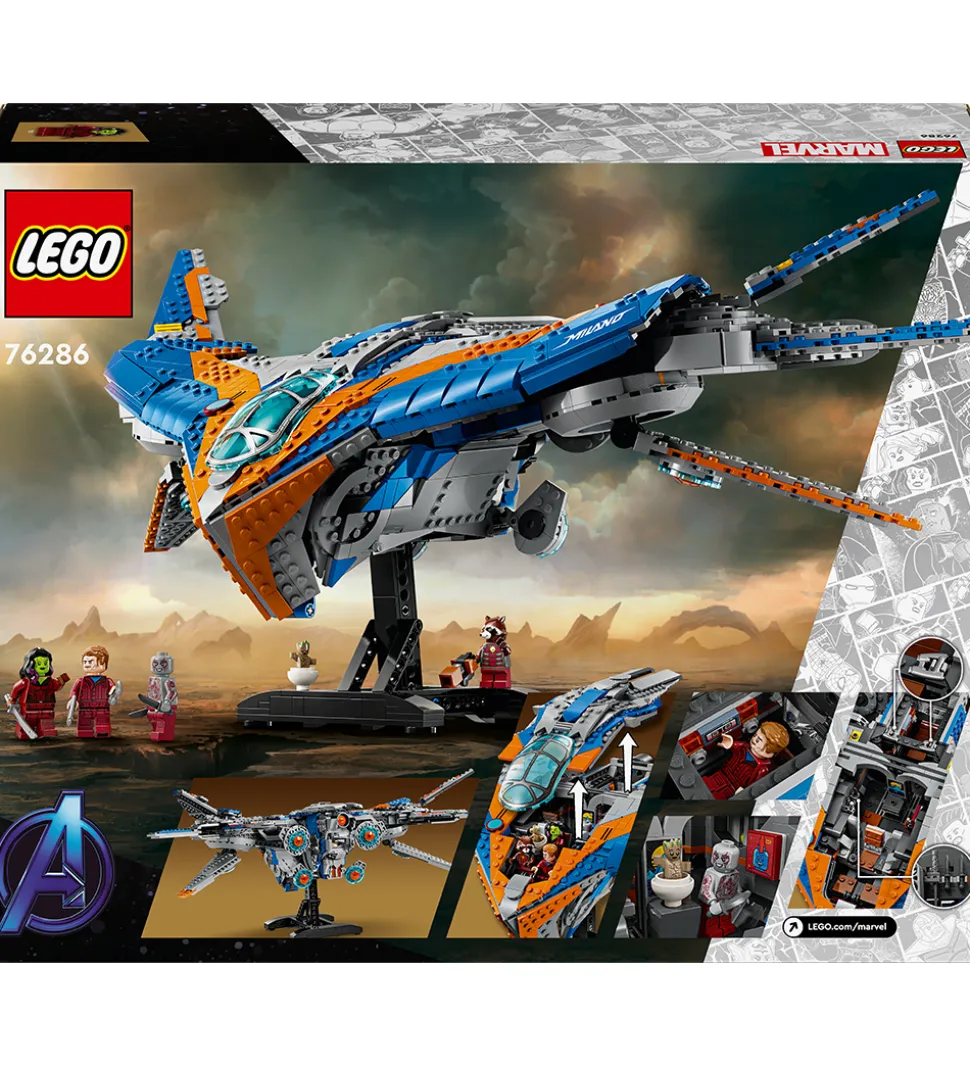 Cool LEGO® Marvel sæt med i alt 2090 klodser, som kan samles til en model af rumskibet Milano fra Guardians of the Galaxy.