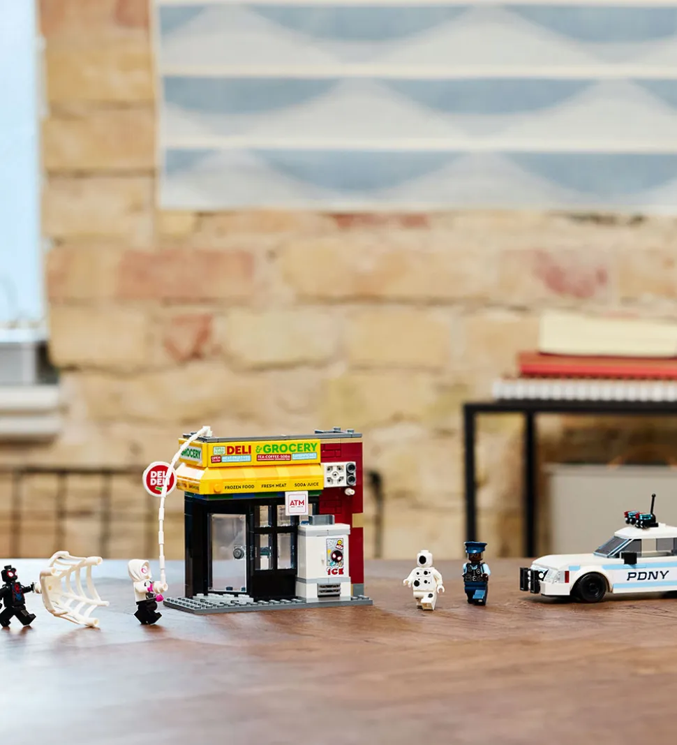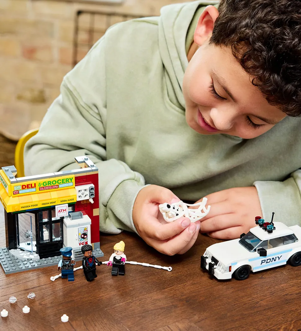 LEGO® Marvel sættet indeholder sjove funktioner, som gør det muligt at genskabe scener fra Spider-Verse-universet. Med den medfølgende byggevejledning kan børn nemt samle sættet og udforske det spændende design.