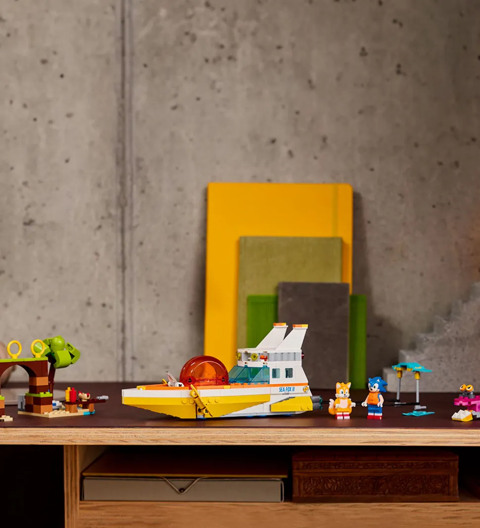 Sjovt LEGO® Sonic The Hedgehog sæt med i alt 393 klodser, som kan samles til Tails’ actionbåd.
