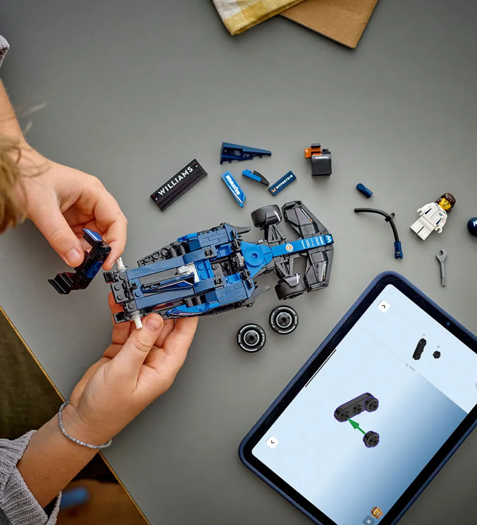 LEGO® Speed Champions sættet er nemt at samle ved hjælp af den medfølgende byggevejledning og kan også findes i LEGO® Builder appen, hvor der kan zoomes og drejes i byggevejledningen.
