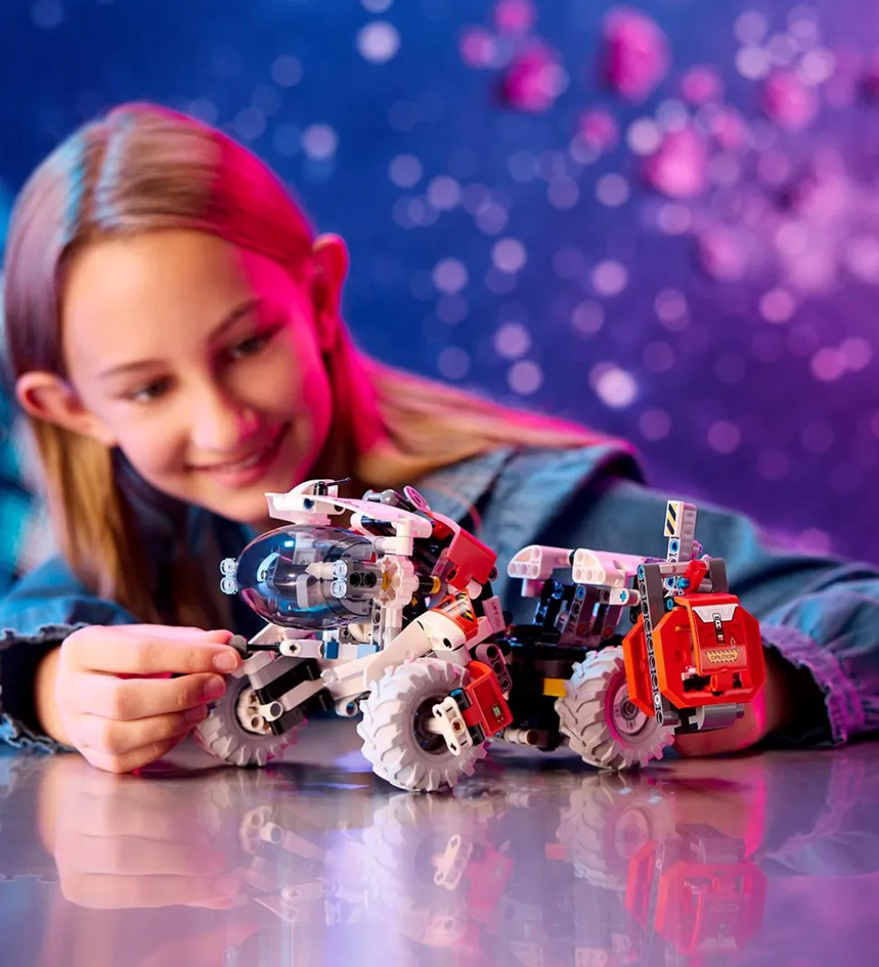 Sjovt LEGO® Technic sæt med i alt 435 klodser, som kan samles til en mobil rumlæsser LT78.