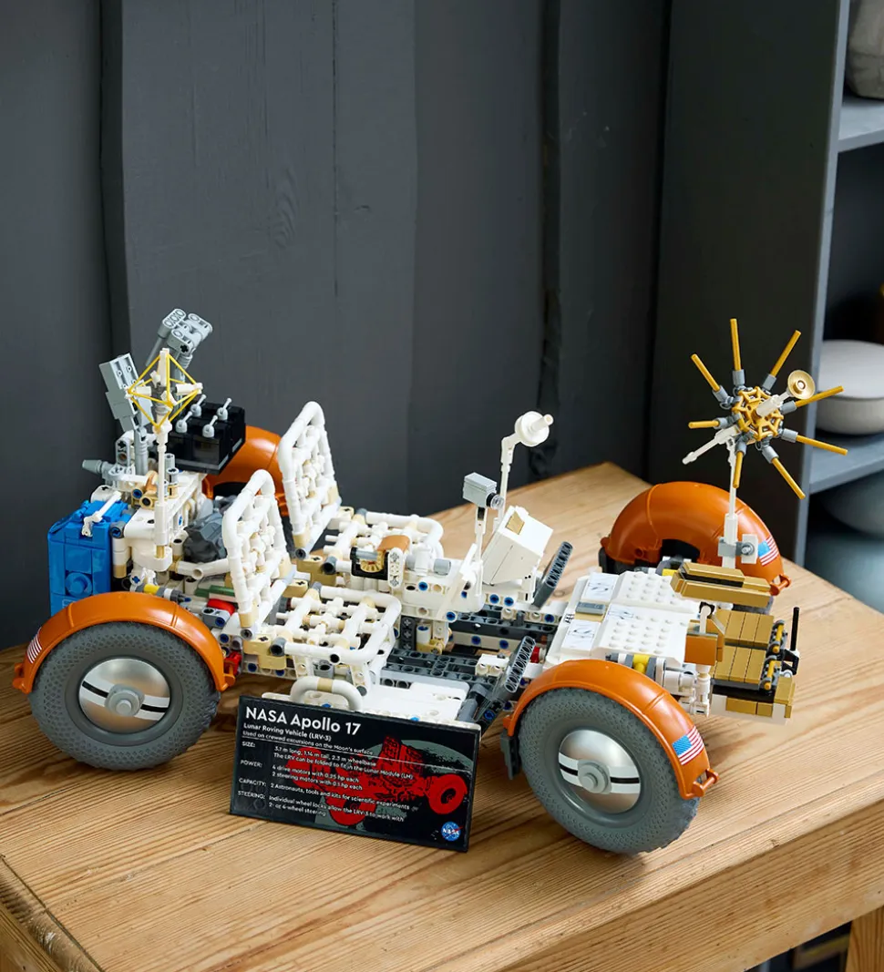 Imponerende LEGO® Technic sæt med i alt 1913 klodser, som kan samles til en NASA Apollo-månebil – LRV. Måneroveren er en udstillings- og udforskningsmodel, som rummer mange fine detaljer såsom sæder, styretøj, affjedring og videnskabelige værktøjer samt udstyr i form af batteripakken, varme- og køleelementerne og kommunikationsenheden. Der medfølger også 3 detaljerede stykker udstyrstilbehør, hver med sin egen faktaplade.