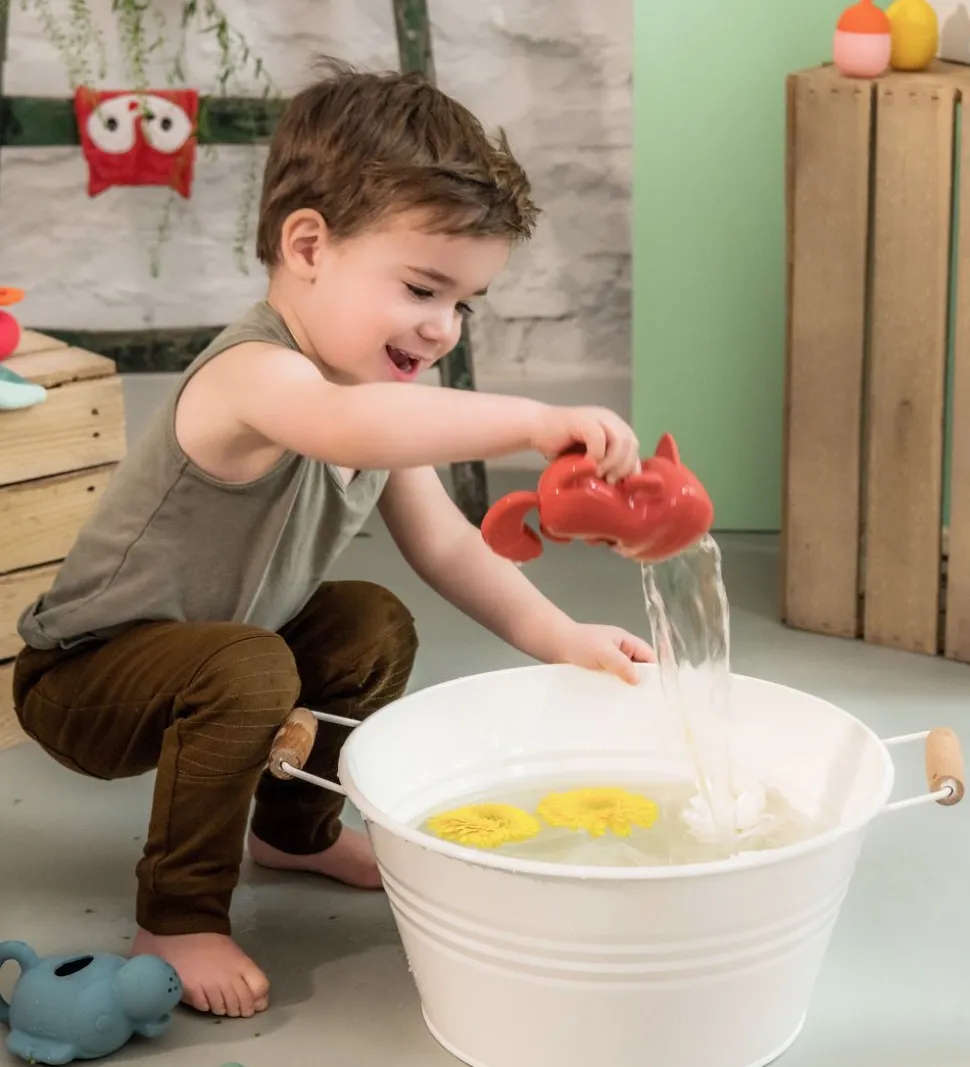 Lilliputiens badedyret er lavet i en blød og formbar silikone, som flyder i vandoverfladen. Badelegetøjet kan fungerer som en vandkande med en en hældetud i munden. Badedyret er en sjov tilføjelse til badet samtidig med, at det udvikler barnets fantasi og finmotorik.