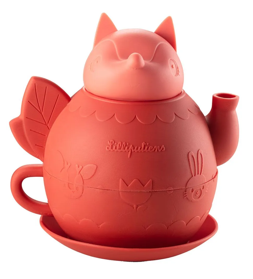 Lilliputiens badelegetøjet består af tre dele, som kan tages fra hinanden. Den ene del er en kop med underkop, en er selve tekanden og den sidste er et dyrehoved. Alle delene flyder i vand og man kan trykke ned på tekanden, som får den til at sprøjte med vand ud af hældetuden.