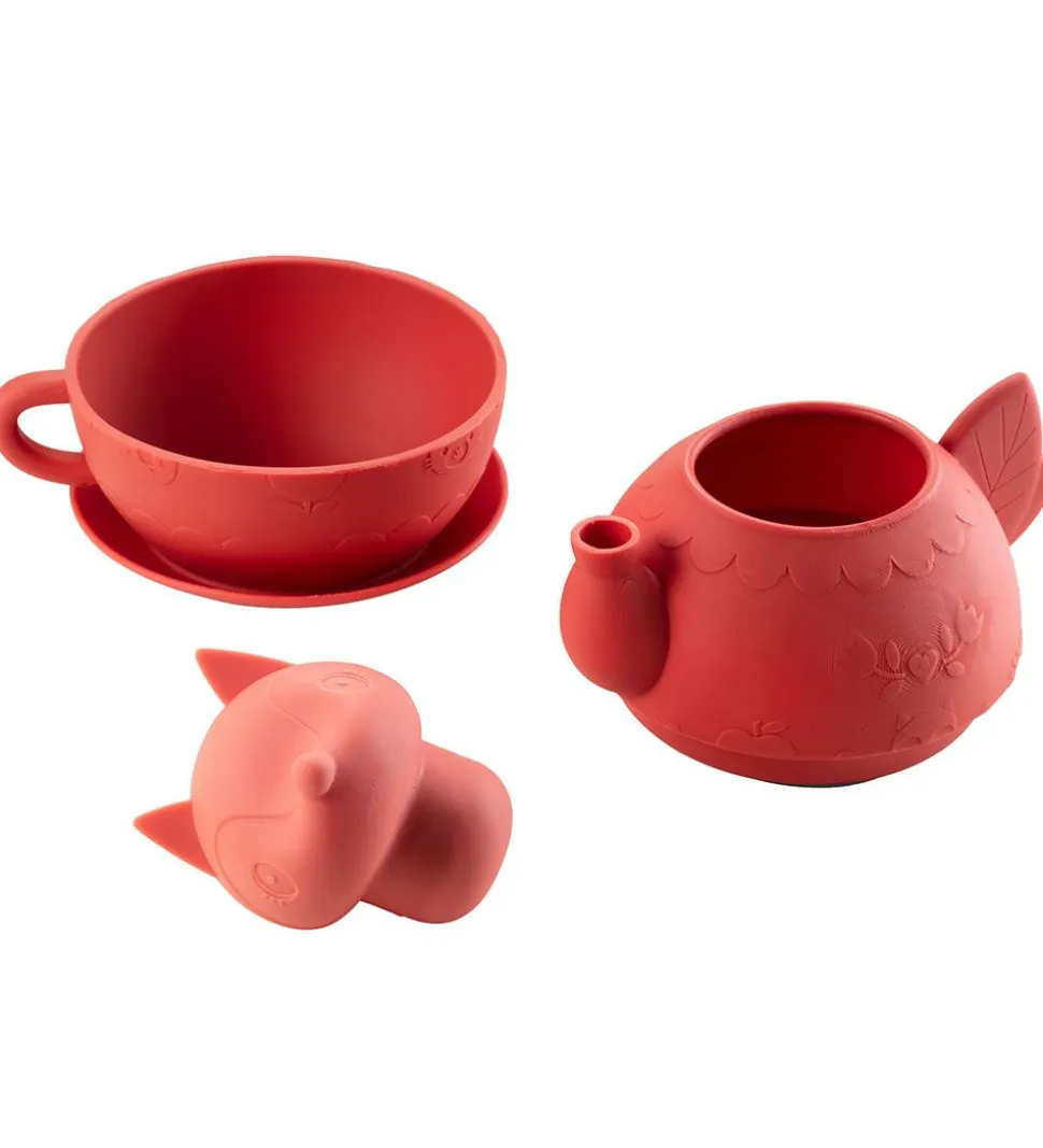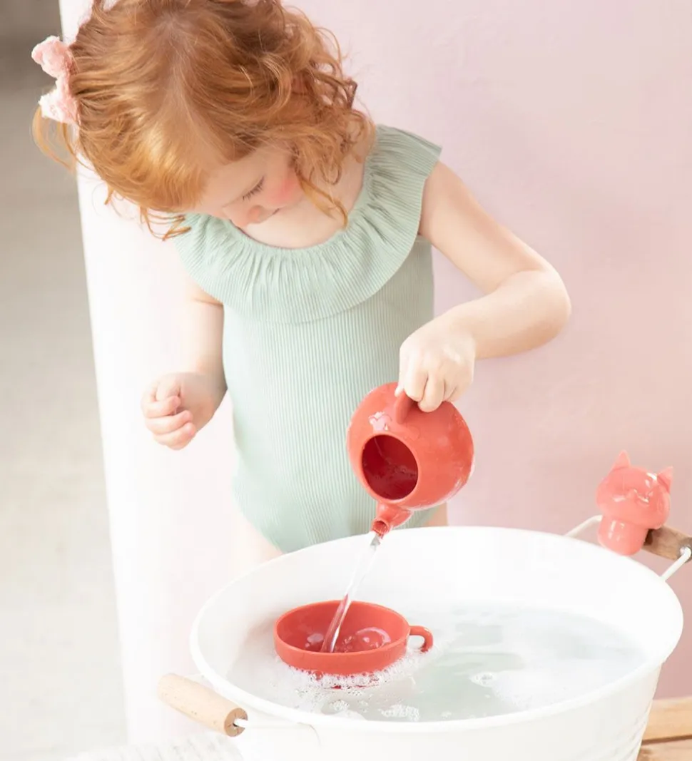 Sjovt Lilliputiens badelegetøj bestående af en tekande i rød.