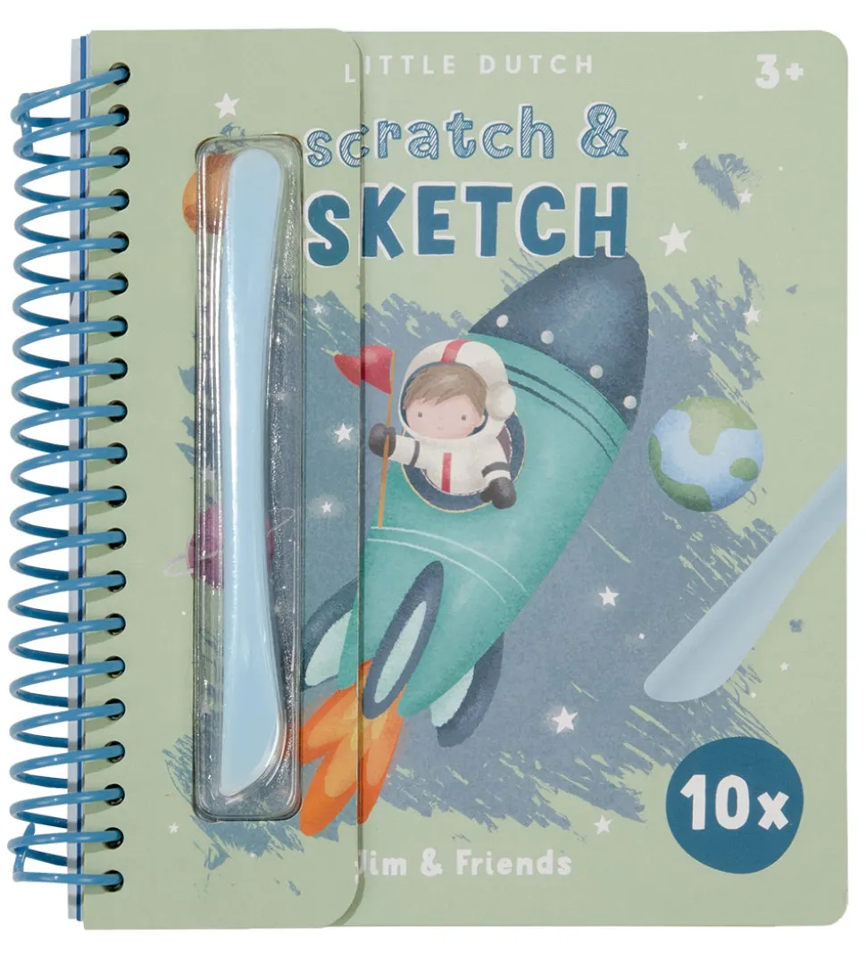 Little Dutch skrabebogen har spiralryg og kraftige sider med motiver, der skal skrabes med det medfølgende skrabeværktøj. Når skabelonerne er skrabet er illustrationerne komplette.