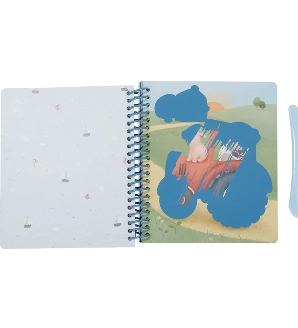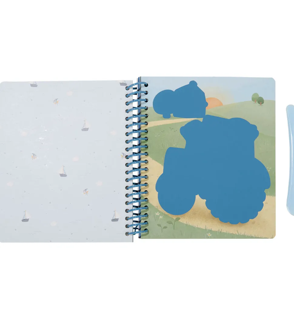 Skøn Little Dutch skrabebog med søde motiver af forkelligetyper landskaber og køretøjer.