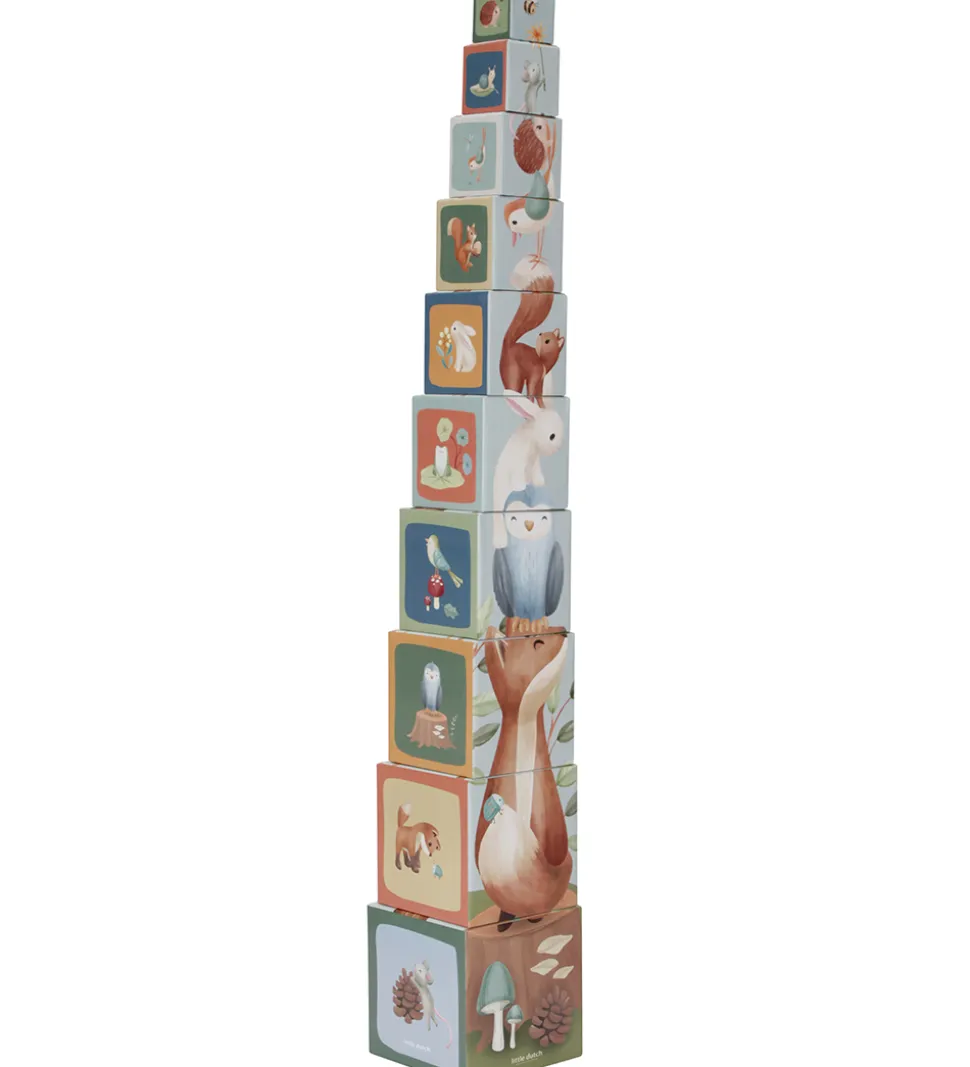 Flot Little Dutch stabletårn bestående af 10 firkantede klodser, der har motiver fra skoven.
