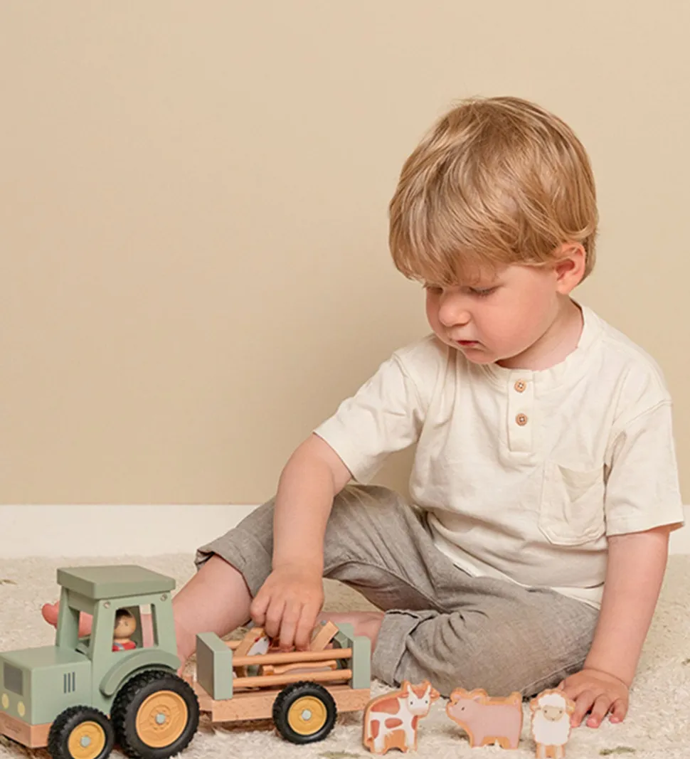 Little Dutch traktoren med trailer fremmer barnets ordforråd, sociale færdigheder, hånd/øje-koordinationen og former- og farvergenkendelsen.