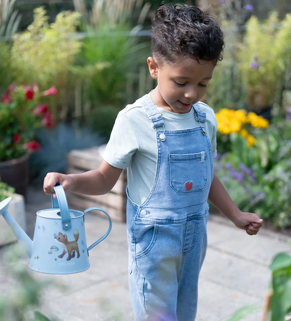 Fin vandkande fra Little Dutch i lyseblå med sødt print af dyr og naturmotiver. Vandkanden har to håndtag og er ideel til leg og udforskning i haven.
