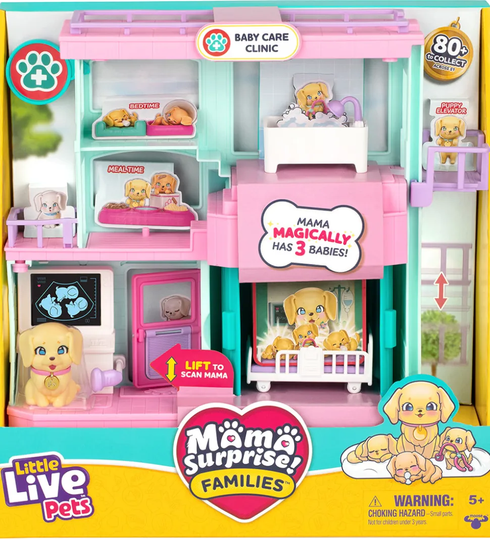 Little Live Pets hvalpeklinikken har spændende detaljer såsom en scanner og mange andre sjove elementer, som barnet kan udforske. Der medfølger en hundemor og tre små hvalpe, som giver mulighed for magisk og fantasifuld leg.