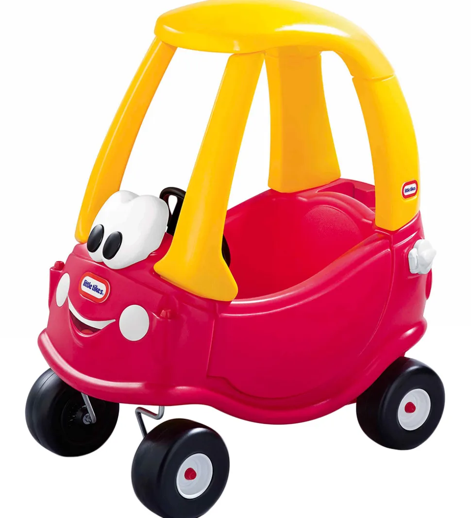 Sjov Little Tikes gåbil i rød og gul med et lille ansigt fortil.