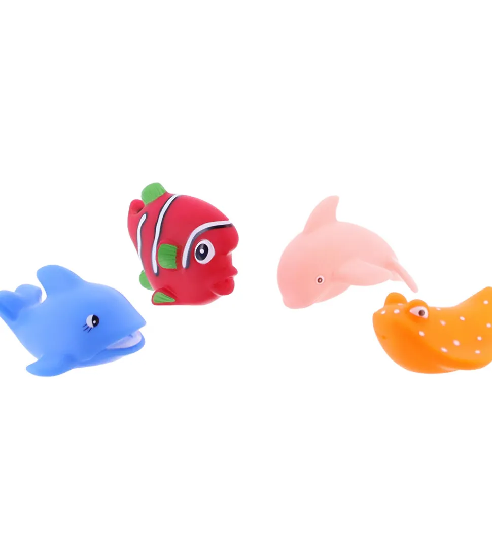 Charmerende Ludi badelegetøj med fire, farverige fisk der kan sprøjte vand. Badelegetøjet inkluderer en fisk i rød, en delfin i lyserød, en rokke i orange og en haj i blå. Perfekt til badetid.