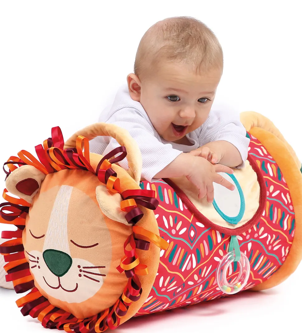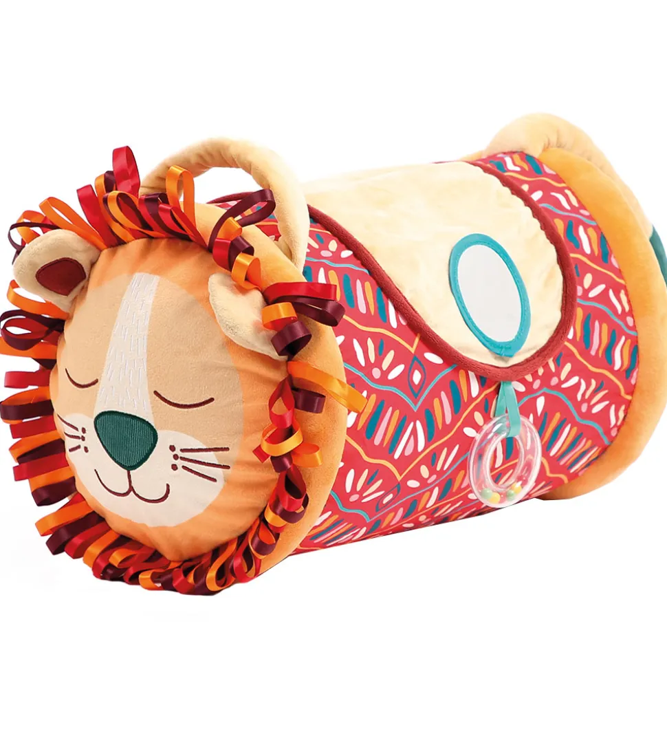 Ludi cylinderen er oppustelig og indvendigt er der kugler, som laver spændende lyde når den ruller rundt. I den ene ende er der et spejl og på siden er der et håndtag. Cylinderen er perfekt til de små, som stadig er ved at udvikle motorikken og de flotte farver og lyde er med til at stimulere sanserne.