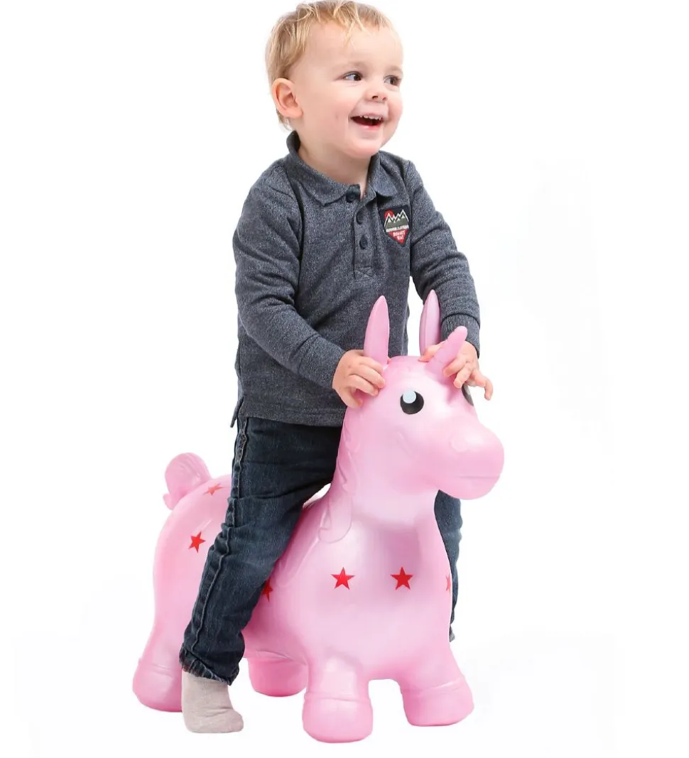 Smuk Ludi hoppedyr formet som en enhjørning i rosa med røde stjerner.
