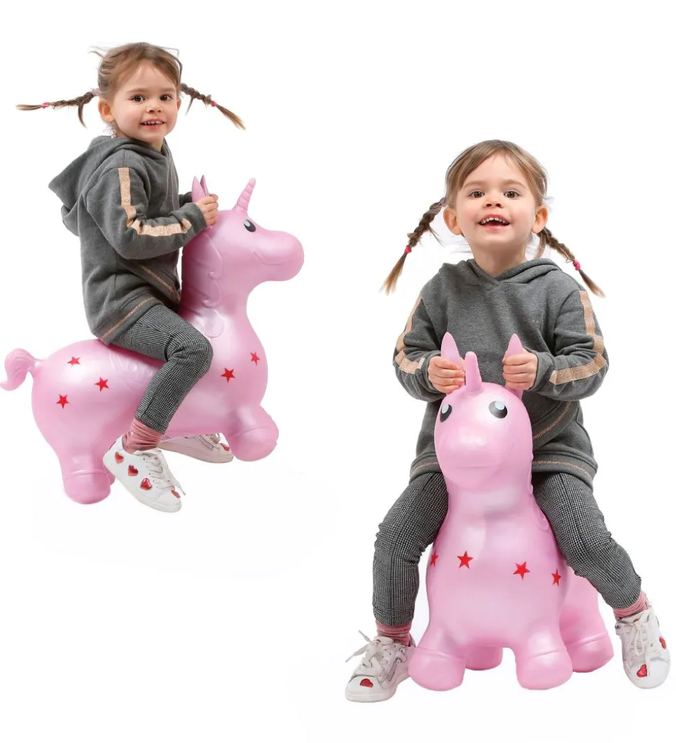 Ludi hoppedyret er lavet af kraftigt plastik, og den er derfor perfekt til at hoppe rundt på indenfor eller i haven. Barnet skal bruge enhjørningens ører som håndtag. Hoppedyret er designet til børn fra 10 måneder og op, og hoppedyret kan derfor være en hjælp til at lære barnet at gå. Den hjælper barnet med at stå oprejst og bevæge sig omkring.