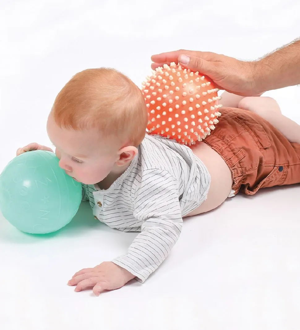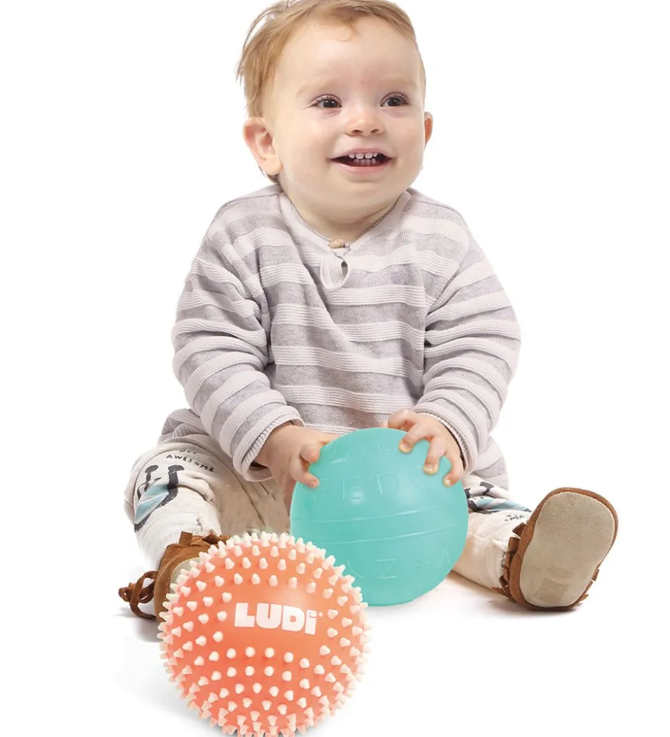 Ludi sanseboldene er både sjove og lærerige for de små, og lægger op til massere af hygge. Den orange bold kan bruges som en massagebold.