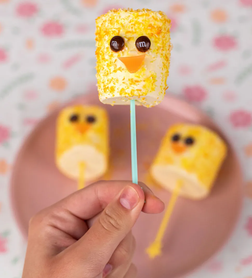 Sjovt Lunch Punch madpakketilbehør i et sæt med et påske-tema i gule og turkis farver. Sættet indeholder: