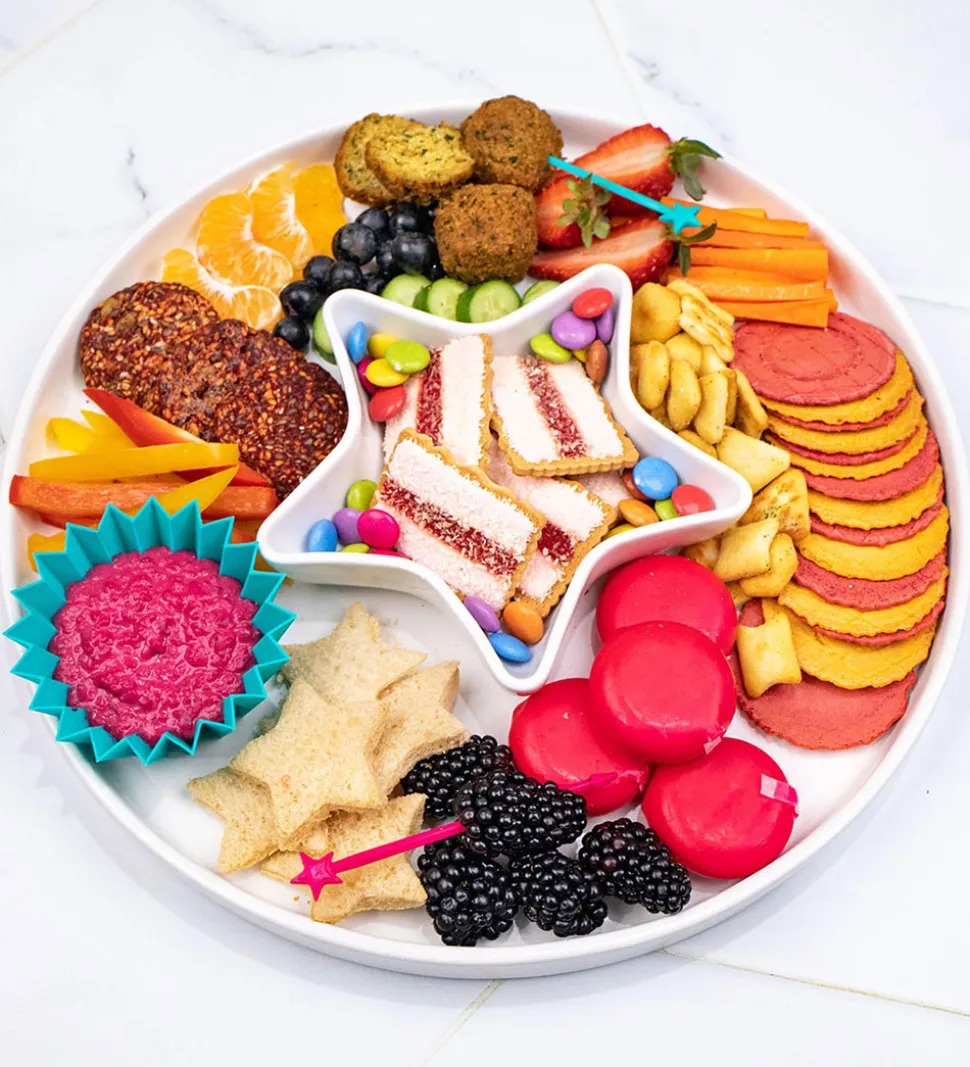 Flotte Lunch Punch madpinde med en stjerne i toppen og solgt som en 4-pak med farverne mørk rosa med et rødligt skær, rosa, lilla og mørk lilla.