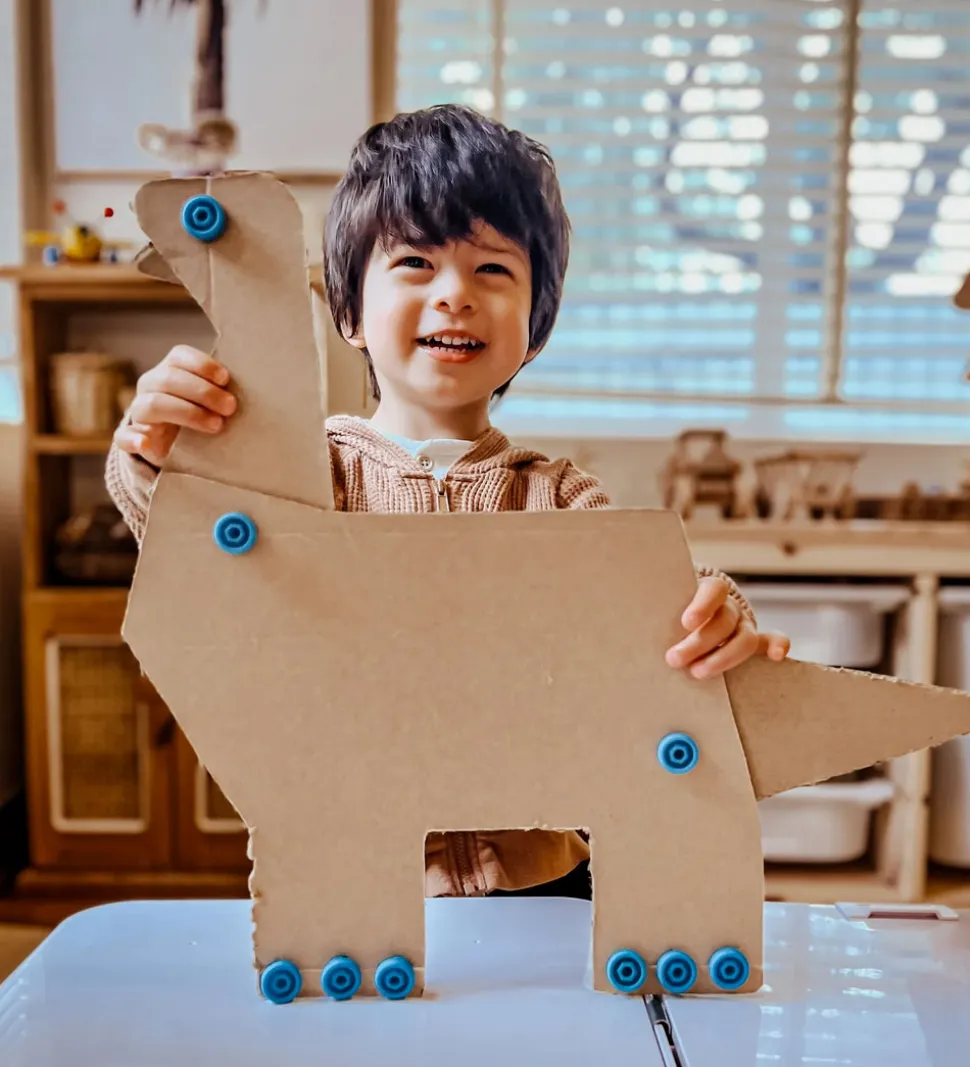 Med MakeDo værktøj til pap kan ungerne lave papkasser om til spændende, sjove og fantasifulde kreationer – kun fantasien sætter grænser.