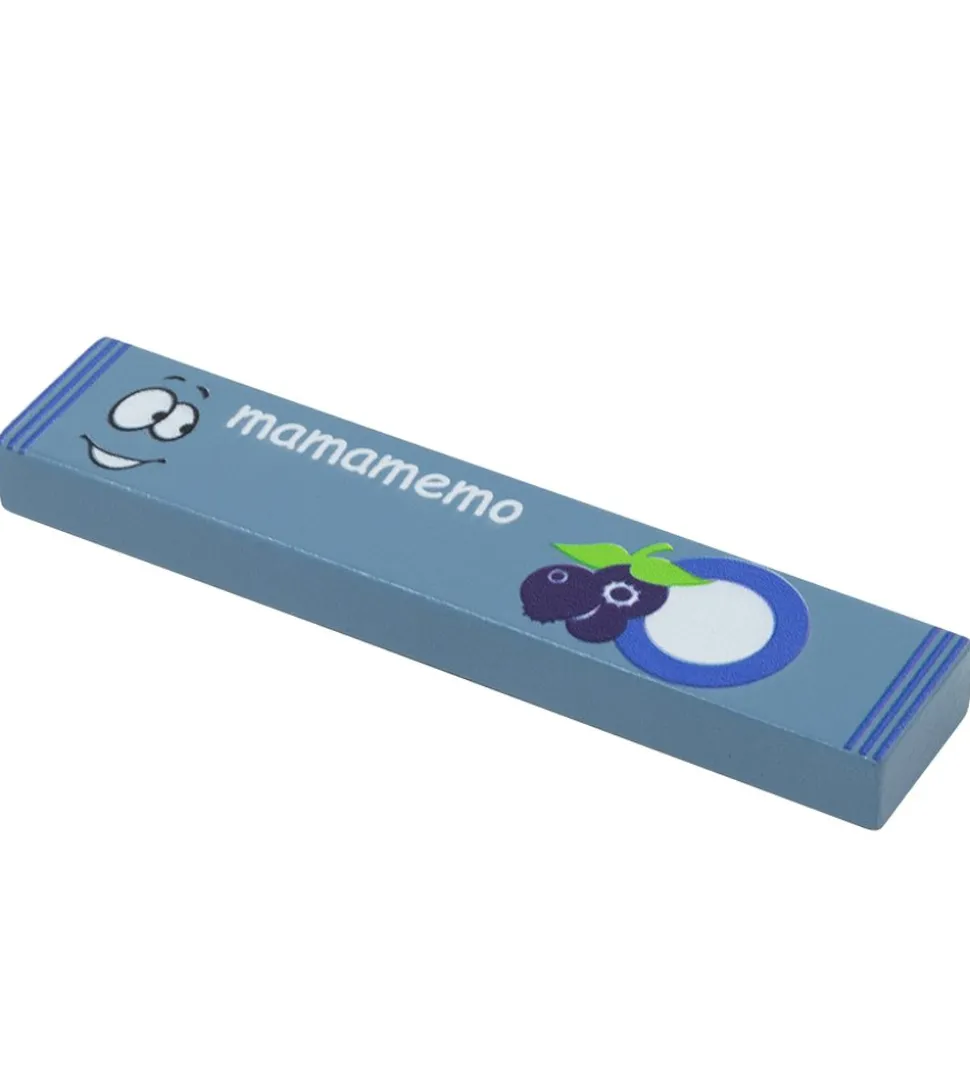 Underholdende MaMaMeMo legemad bestående af en frugtstang med blåbær.