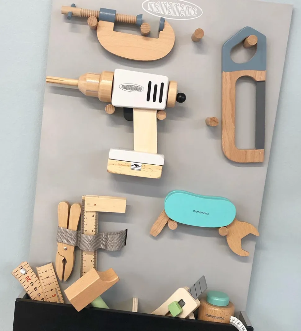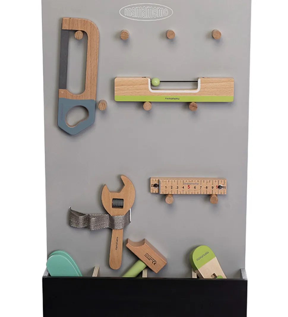 MaMaMeMo værktøjsopbevaringen ligner den ægte vare, og den fungerer ligesådan med masser af mulighed for opbevaring af værktøj. Værktøjet kan hænge på de små knopper eller ligge i bunden af de små kasser. Værktøjsopbevaringen er perfekt til de kreative børn som vil skabe deres egen leg, og får barnet til at føle sig som en del af den spændende dagligdag.