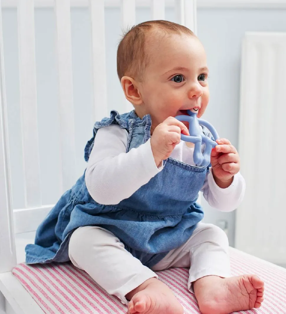 Matchstick Monkey bideringen er i en god kvalitet og hjælper baby med at få stimuleret gummerne når de klør. På bagsiden af hovedet er der små dutter, som kan bruges til at træne de små i at børste tænder. Den ergonomiske form gør det let for selv de helt små at holde fast i den.
