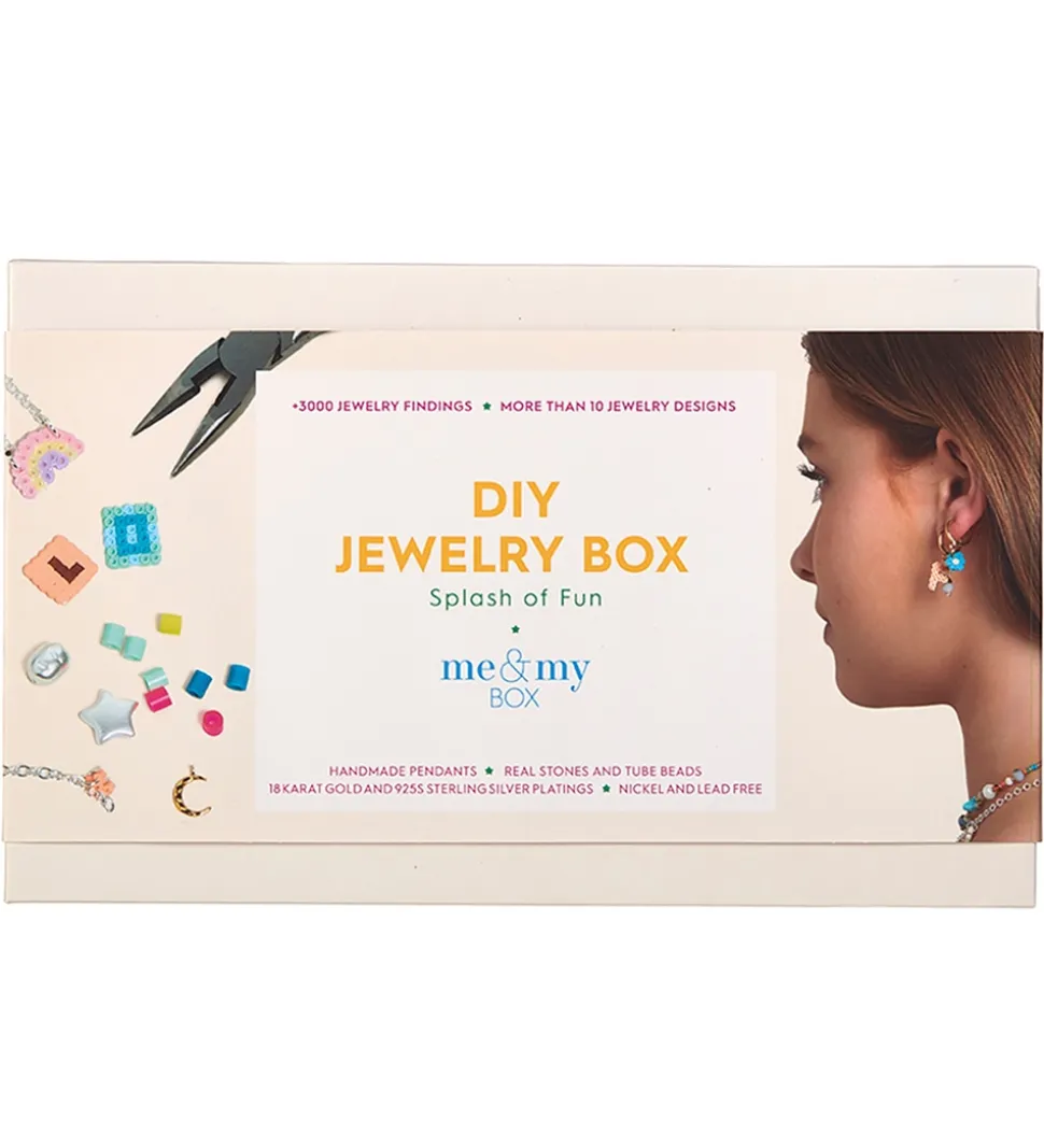 Me&My BOX startboxen er perfekt til de kreative, som ønsker at sætte et unikt præg på deres smykker. Med sættet kan man lave armbånd, halskæder, ankelkæder, øreringe og hvad end ellers fantasien kan finde på. Me&My BOX designer selv deres vedhæng og er af yderst høj kvalitet. Alle metaller er belagt med enten 18 karat guld eller 925S Sterling sølv.