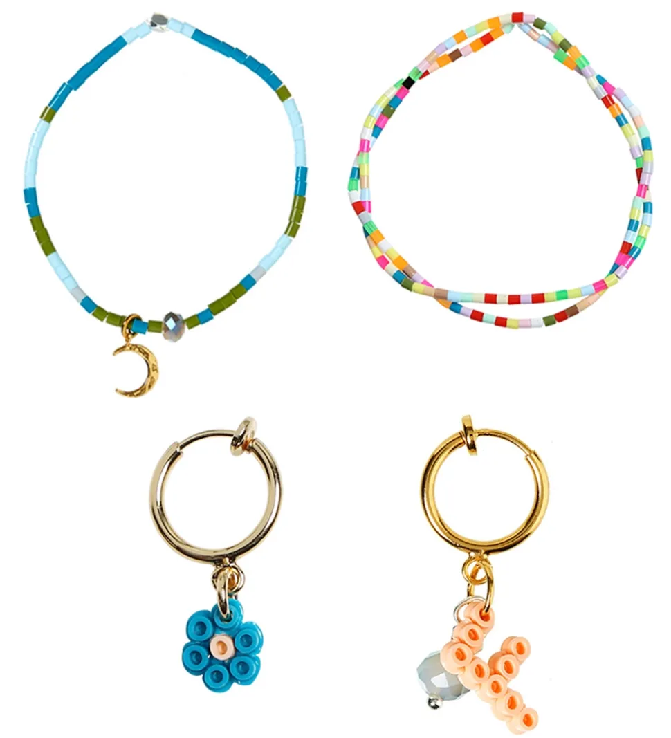 - Perler: Eksklusivt sæt blandede rørperler af Me & My Box, blanding af glas- og stenperler, shellperle