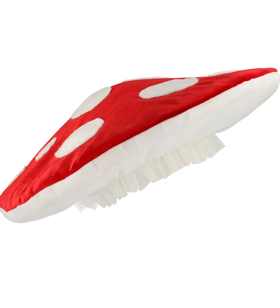 Flot Meri Meri udklædning, som forestiller en stor, rød fluesvamp med hvide prikker.