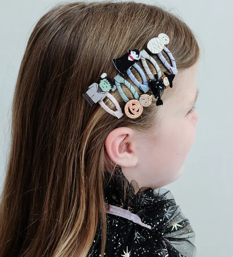 Seje Mimi & Lula hårspænder solgt i en 5-pak i pastelfarver med glimmer og flotte halloween-motiver.