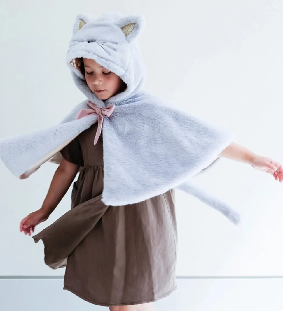 Mimi & Lula kappen lukkes fortil med en enkel trykknap. Kappens hale har fyld samt metal så den kan formes som det lyster. Kappen er perfekt til fastelavn eller som en sjov del af hverdagslegen.