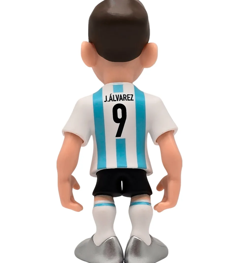 Sej Minix figur fra collectible figurines-serien Football Stars, som forestiller stjernespilleren Julian Alvarez iført Argentina-hjemmebanedragt.
