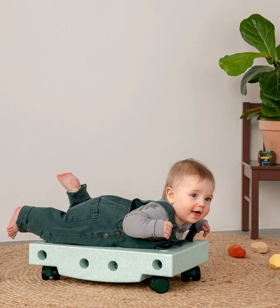 Rullebrættet er lavet af genanvendeligt EPP-skum og fødevaregodkendt ABS. Det kan vaskes med vand og en børste, tages med i bad og endda også komme i opvaskemaskinen.