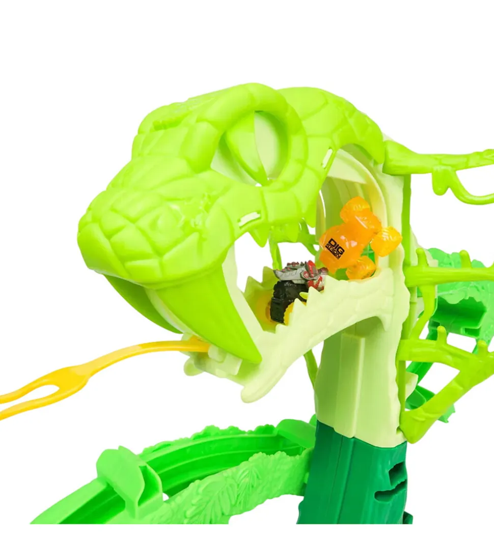 Monster Jam bilbanen skyder de små biler afsted og fører dem rundt i loops, indtil de støder sammen eller bliver spyttet ud af kobraens mund. Der medfølger to biler: Thunderroarus og JCB Digatron.