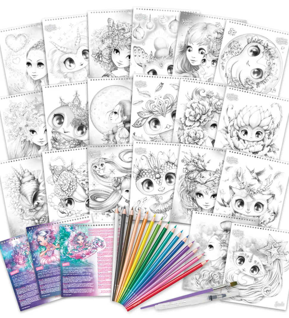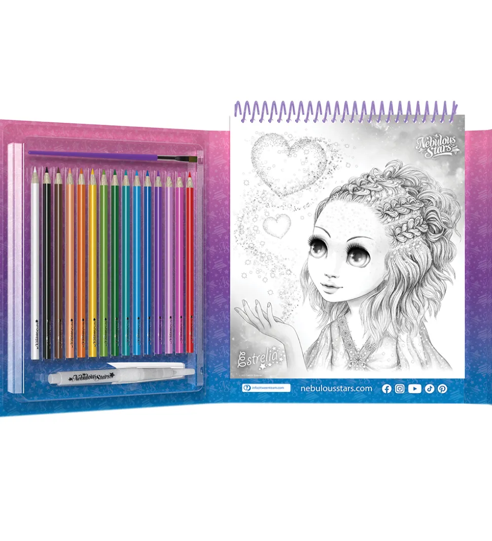 Flot Nebulous Stars malebog med tilbehør i et tema med Estrelia og Astria.