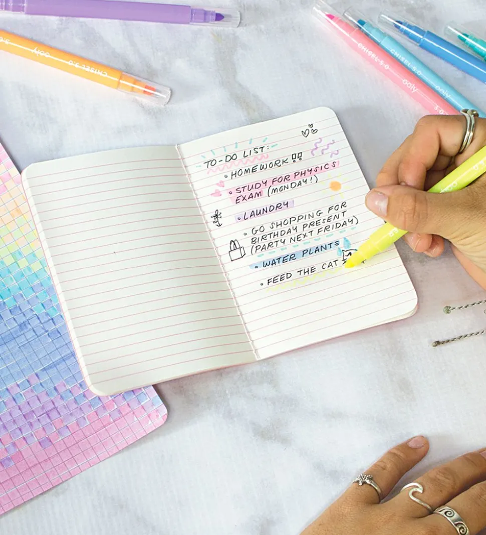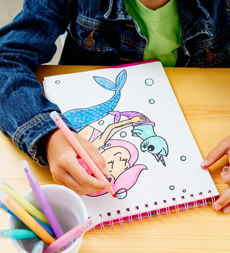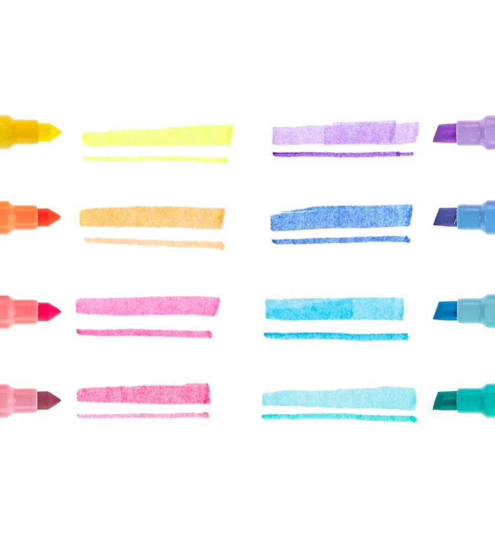 Ooly tuscherne har et smart dobbeltsidet design, hvor den ene ende har en spids tip og den anden har en flad overstregningstusch. Tuscherne kan både bruges som en normal tusch til at tegne, eller som en overstregningstusch.