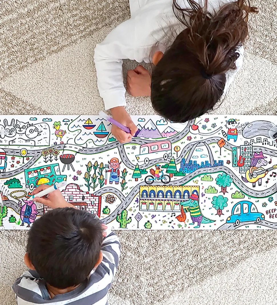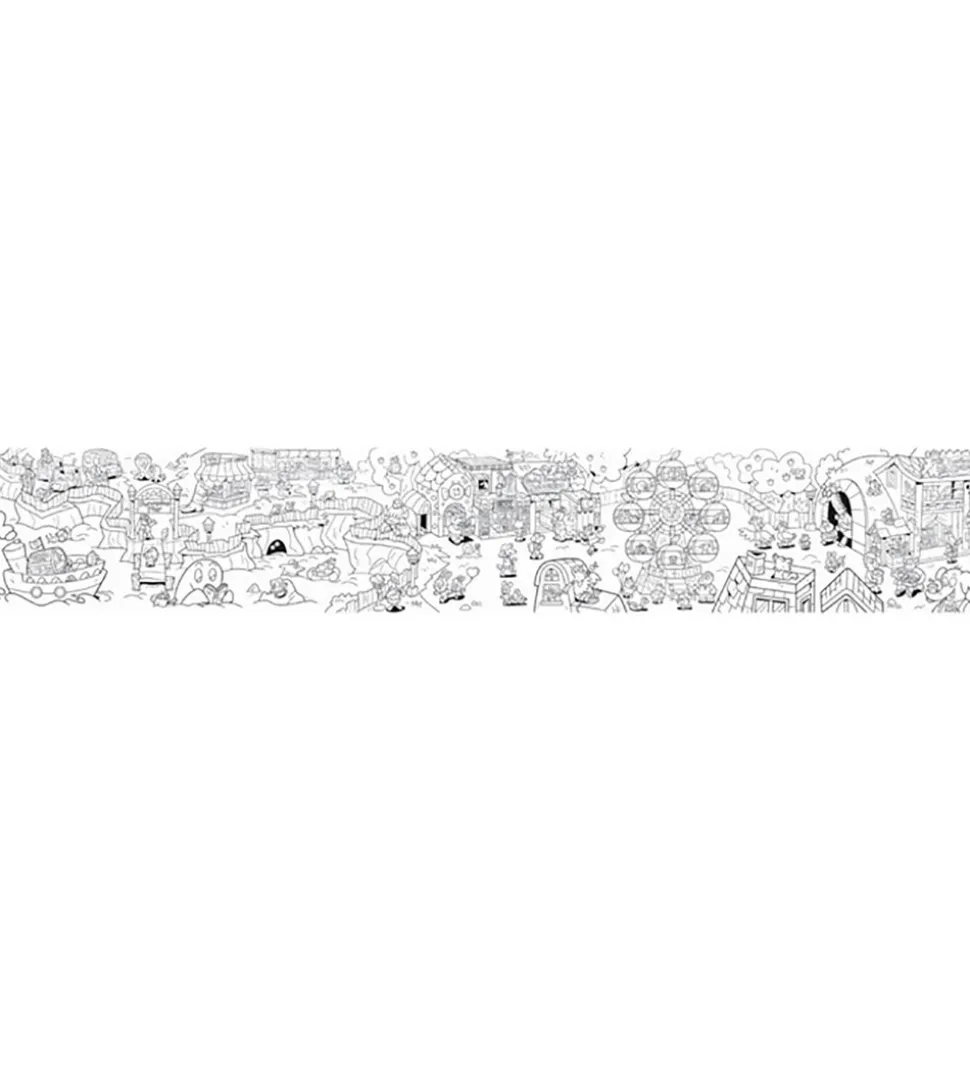 Ooly malebogen består af kraftig kvalitetspapir, som både er gode til farveblyanter og tuscher. Malebogen kan foldes ud, så hele bogen ender med at være ét flot værk.