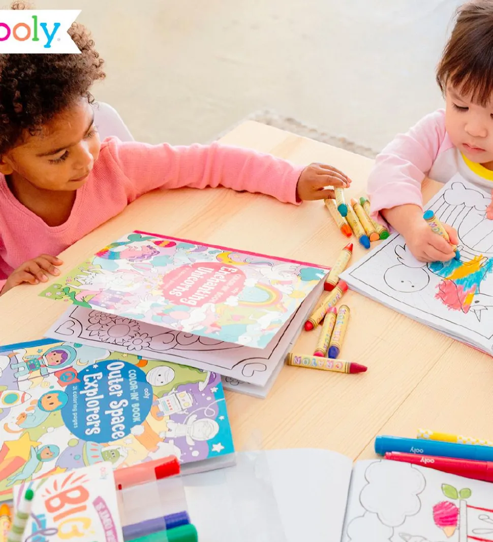 Ooly malebogen består af kraftig kvalitetspapir, som både er gode til farveblyanter og tuscher. Malebogen er indbundet, så hver enkelt side kan tages ud og hænges op på væggen eller bruges som kort, hvor der ikke er et nyt motiv på bagsiden.