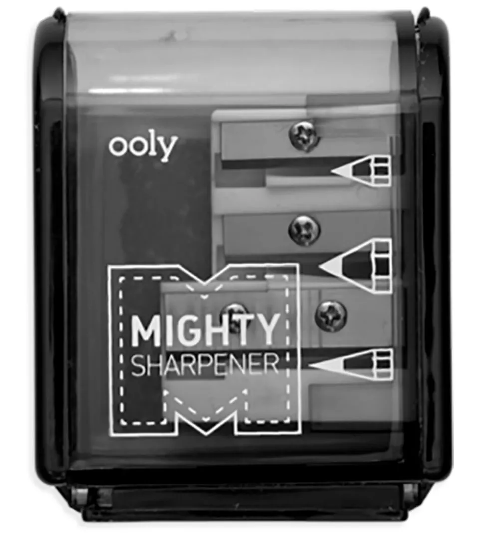 Ooly sættet er perfekt til skolen med et flot viskelæder, og blyantspidseren har tre muligheder. Én til en bred blyant samt to til smallere blyanter, som kan blive meget spids eller normal.