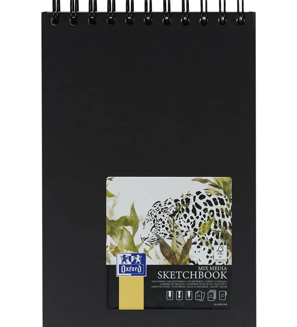 Oxford skitsebogen har spiralryg og den er perfekt til tegninger med blyant og farver. Papirets kvalitet er på 225 g/m2. Skitsebog er i en praktisk størrelse til at have med på farten.