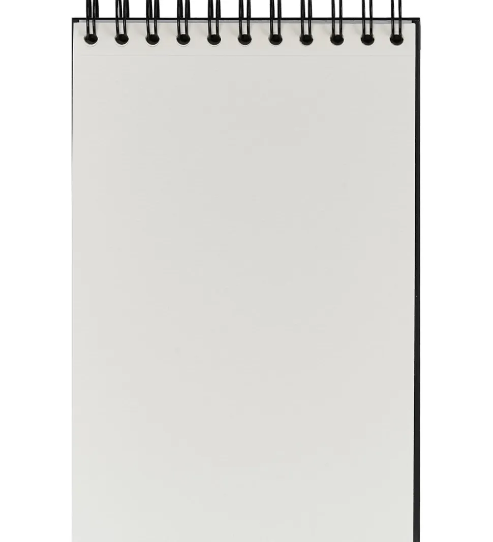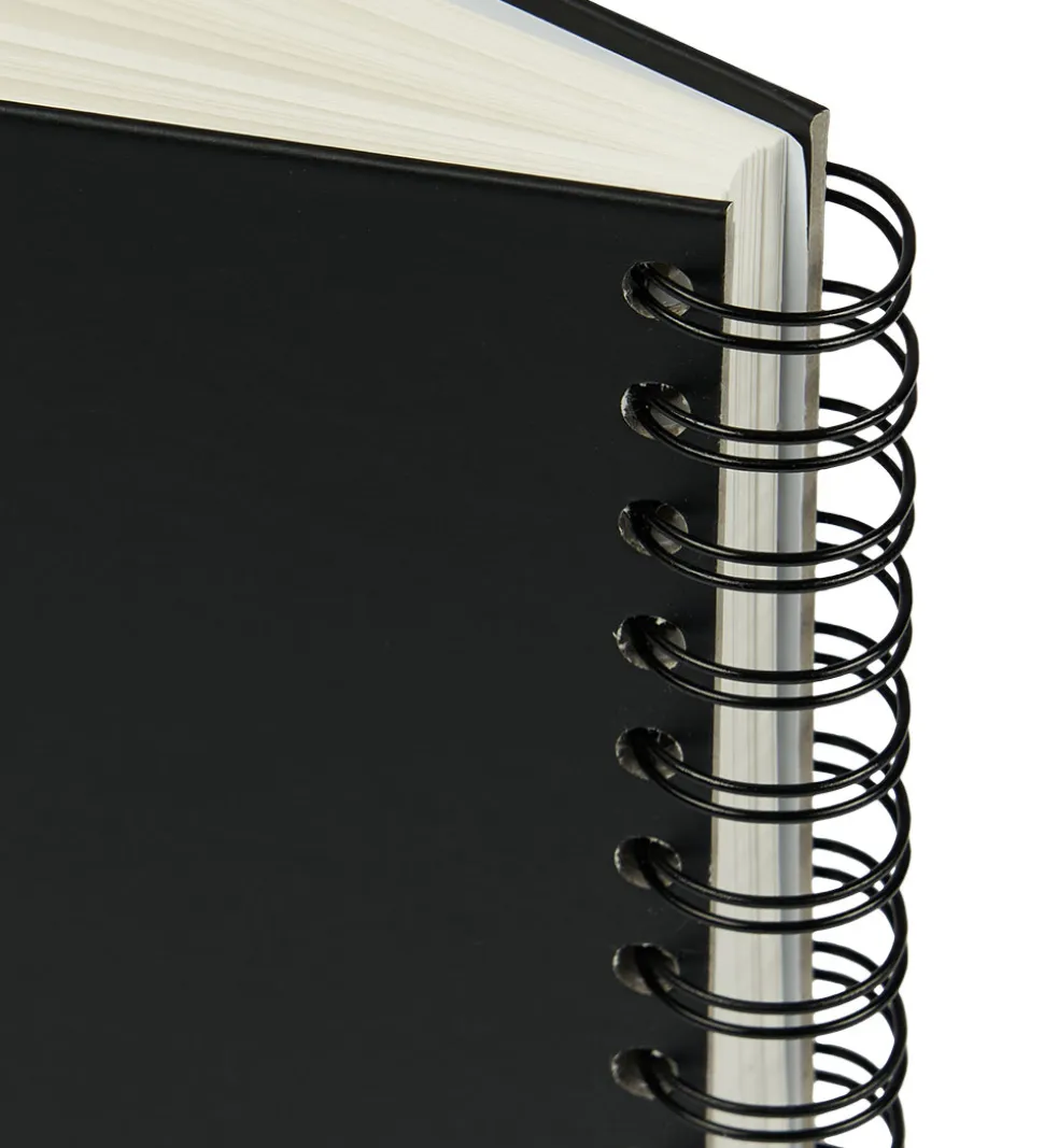 Fin Oxford skitsebog med 40 hvide, rene stykker A5-papir. Skitsebogen har et sort, hårdt omslag.
