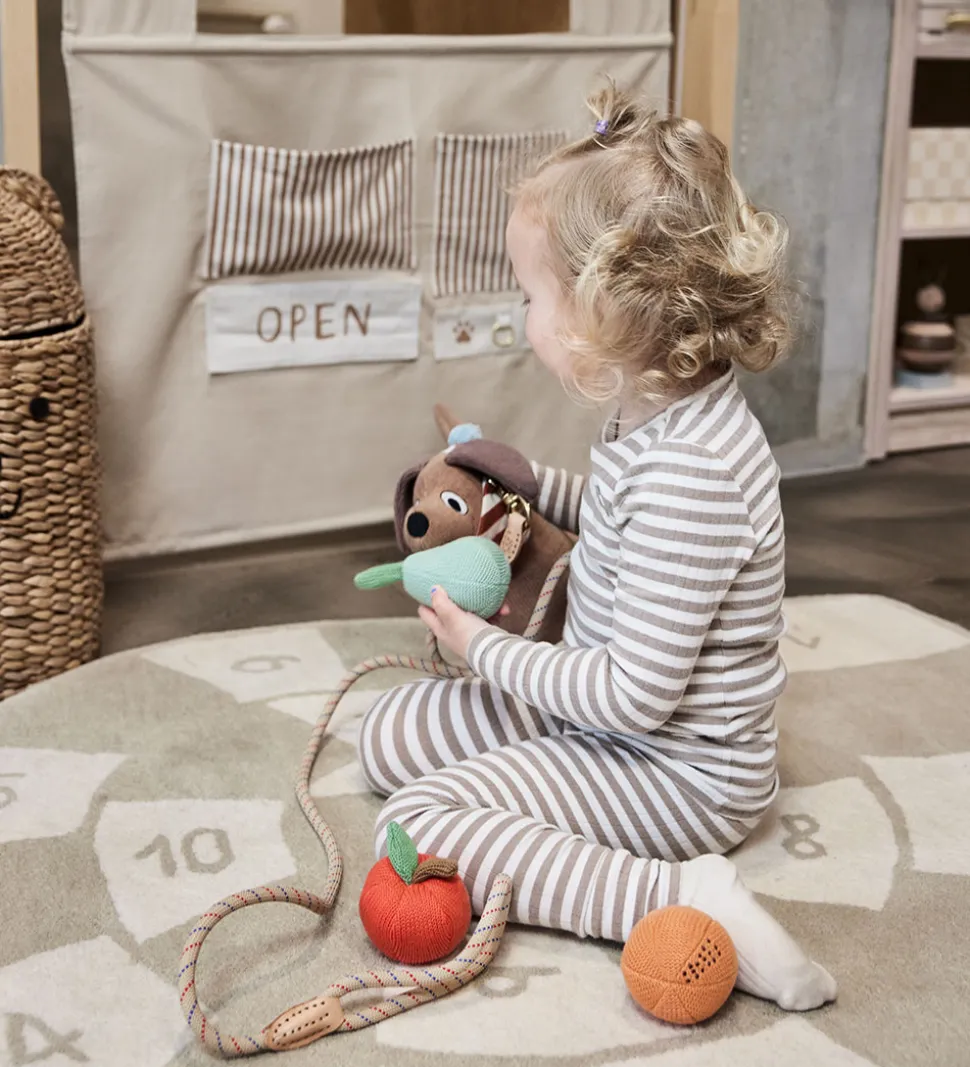 Fint OYOY legemad med en strikket struktur, bestående af en fem forskellige stykker frugt.