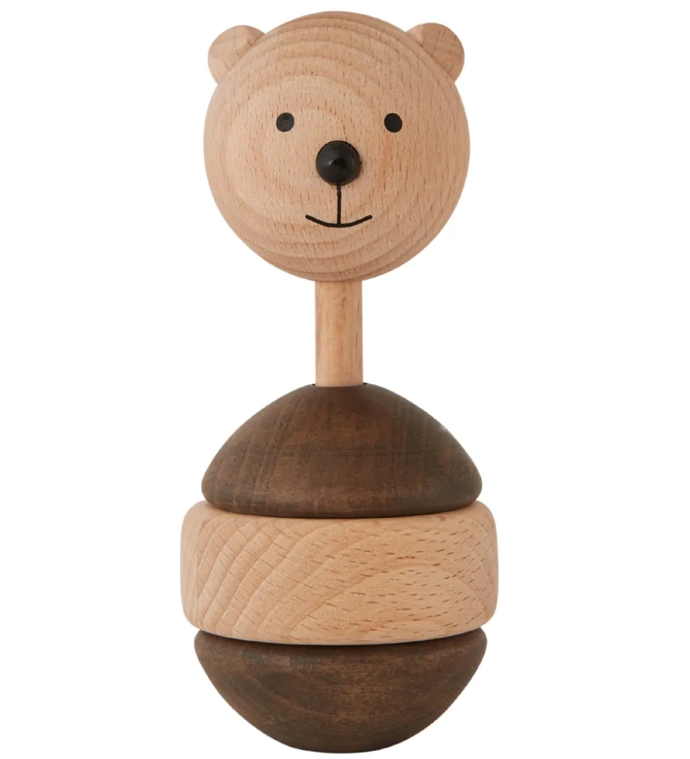 Smart OYOY rangle i naturlig træ, med form som en bjørn.