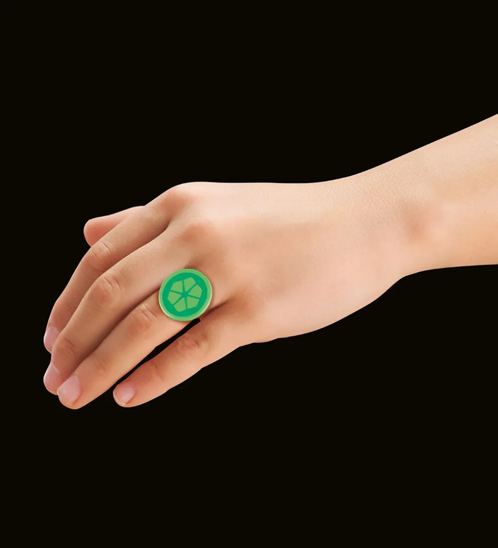Sejt Playmobil Miraculous sæt med i alt 7 dele, der tilsammen udgør en figur af Carapace fra tv-serien med tilbehør og en fed ring til det legende barn.